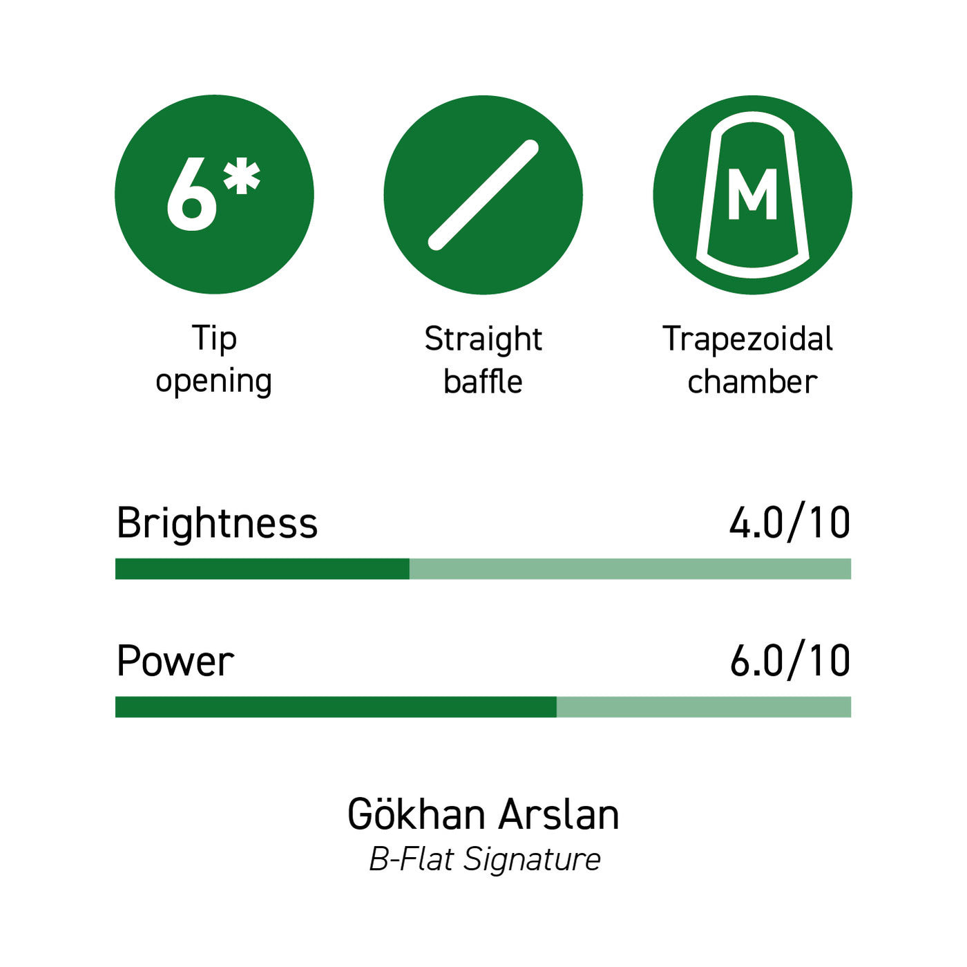 The trapezoidal chamber combined with a short table allows for a versatile and stable sound with easy access to higher registers. This mouthpiece is particularly suitable for klezmer music but also fits other styles of music.