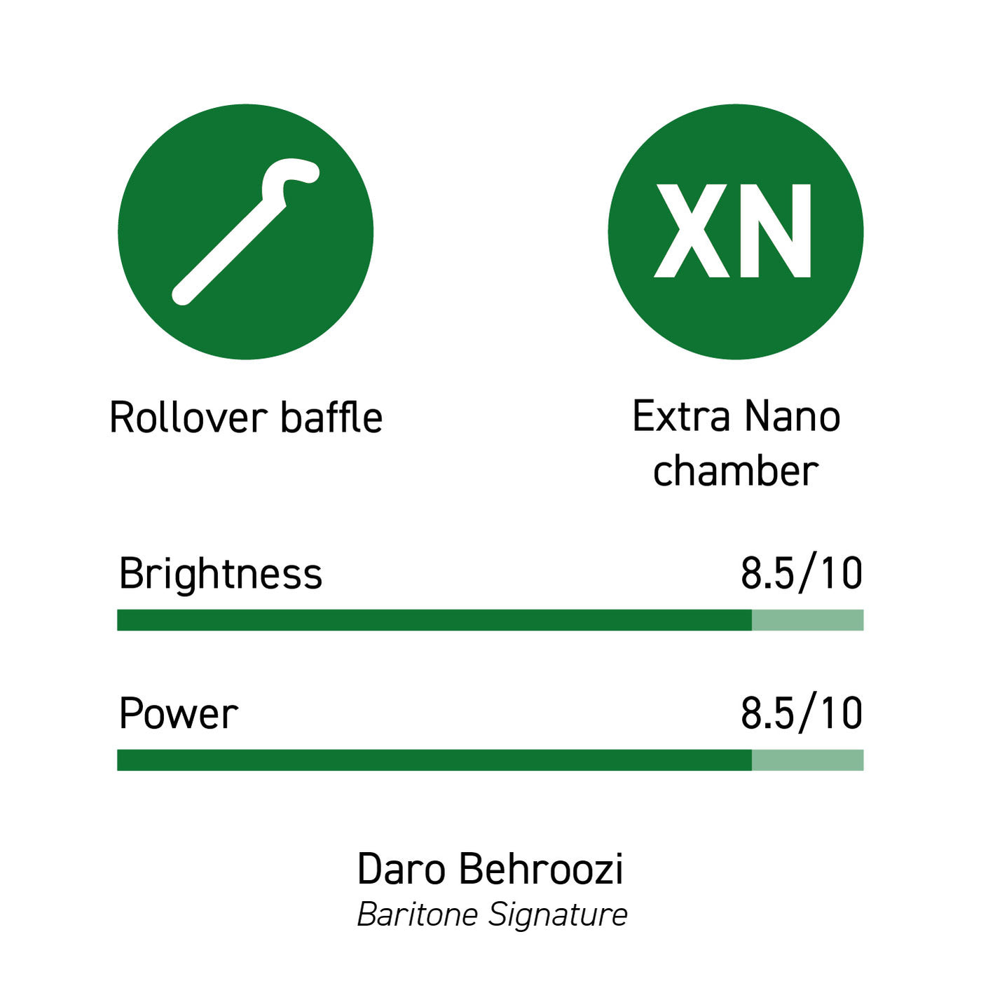 With its rollover baffle and very small chamber, the Daro Behroozi baritone mouthpiece is a true rocket ship with an extra bright and powerful sound.