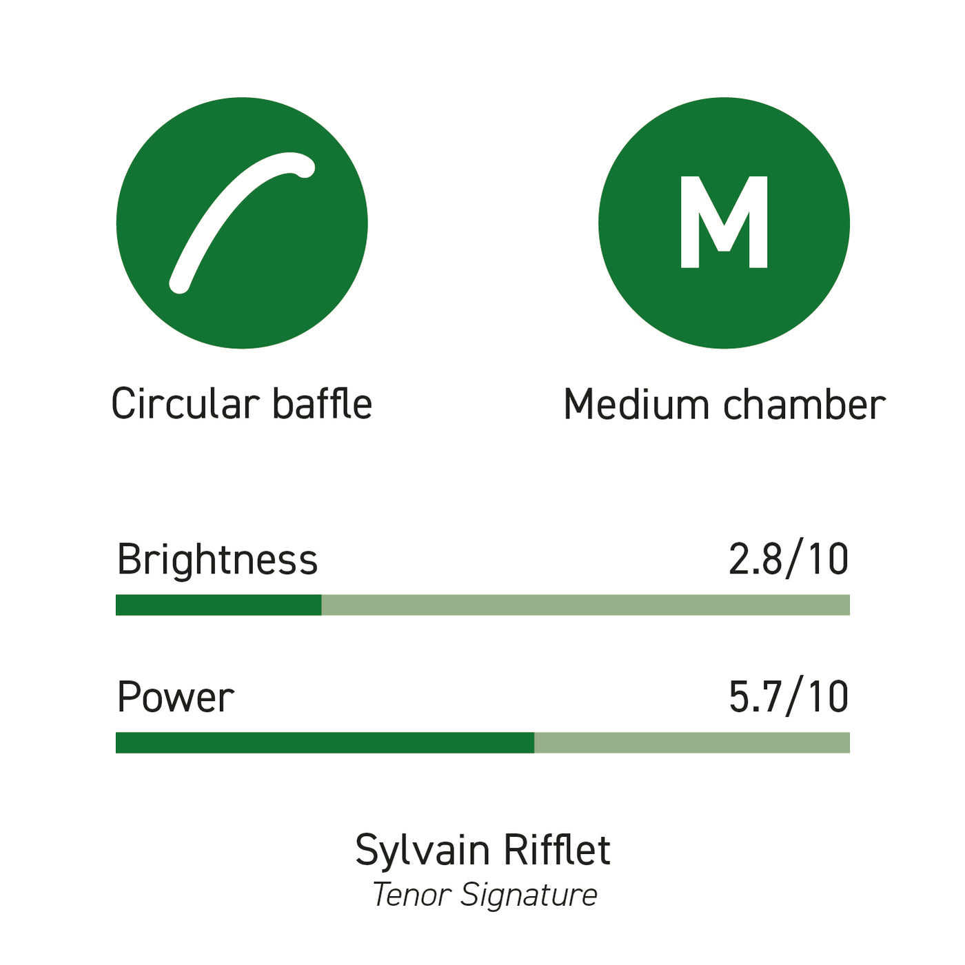 The circular baffle and medium chamber of Sylvain Rifflet's Signature mouthpiece provides a dark and quite focused sound, with power and flexibility.