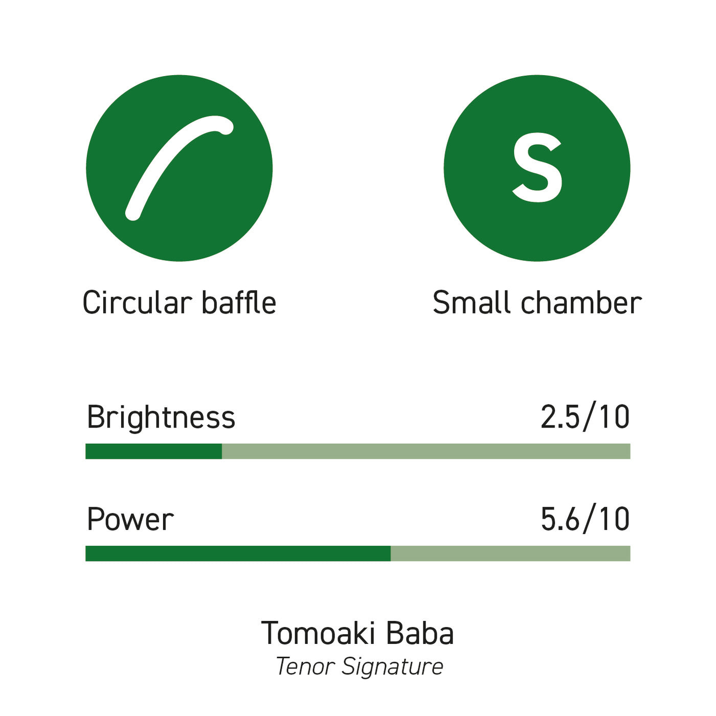 The Tomoaki Baba Signature mouthpiece is caracterized by a circular baffle and a medium/small chamber, for a dark, centered and powerful sound.