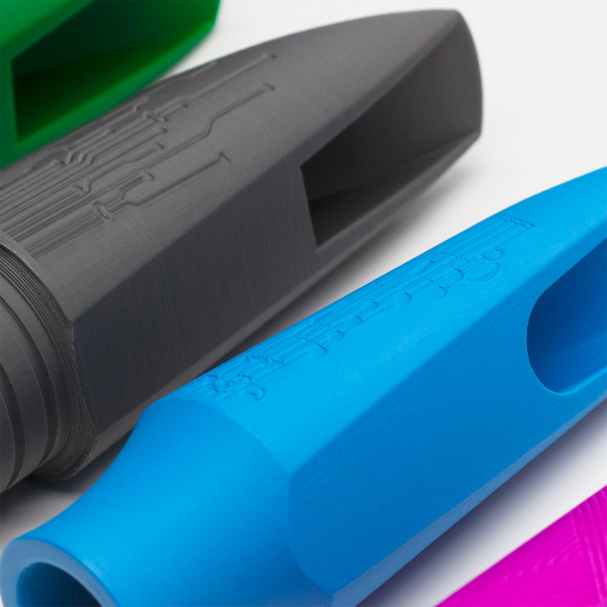 Syos mouthpieces are made from UPSCAL3D, a new proprietary material developed by Syos together with the best French research labs. Engineered specifically for 3D printing, UPSCAL3D helps create durable, comfortable mouthpieces fit for contact with the mouth and delivering best-in-class acoustics.