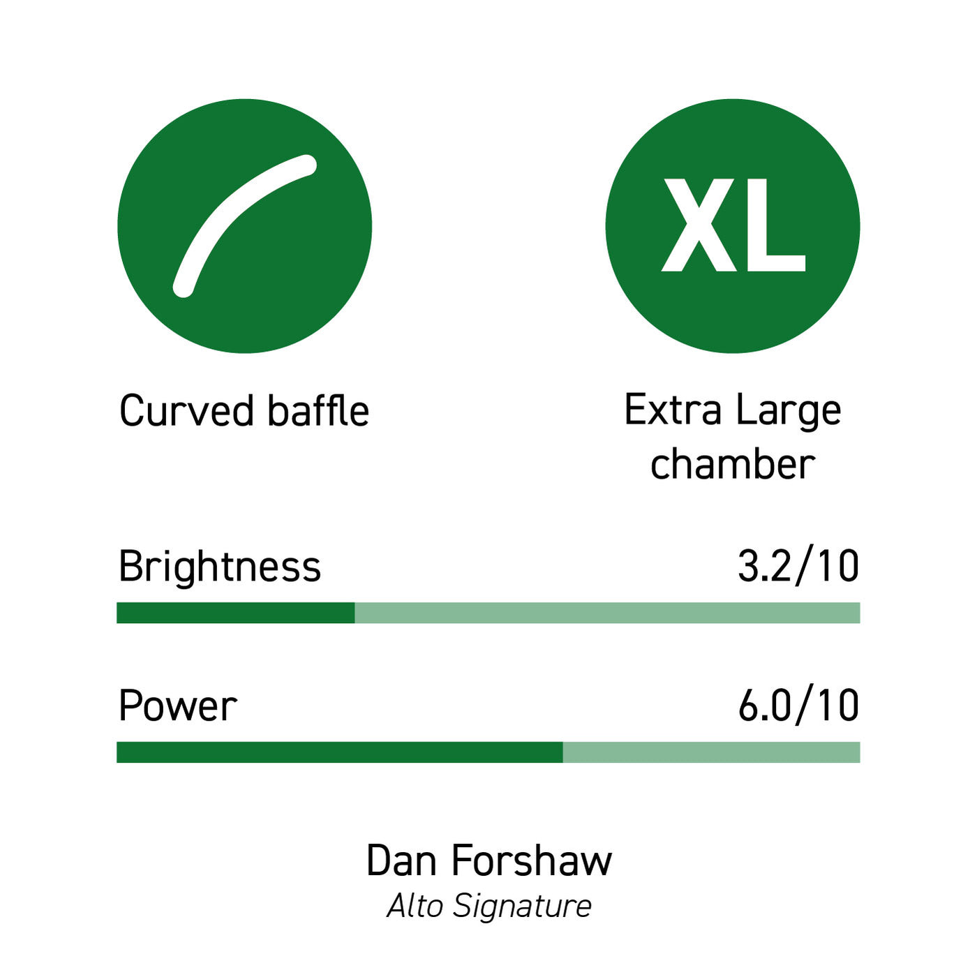 Avec sa chambre extra-large et son plafond courbe, le bec Alto de Dan Forshaw vous offrira un son mat, chaleureux et large avec une grande facilité d'émission.
