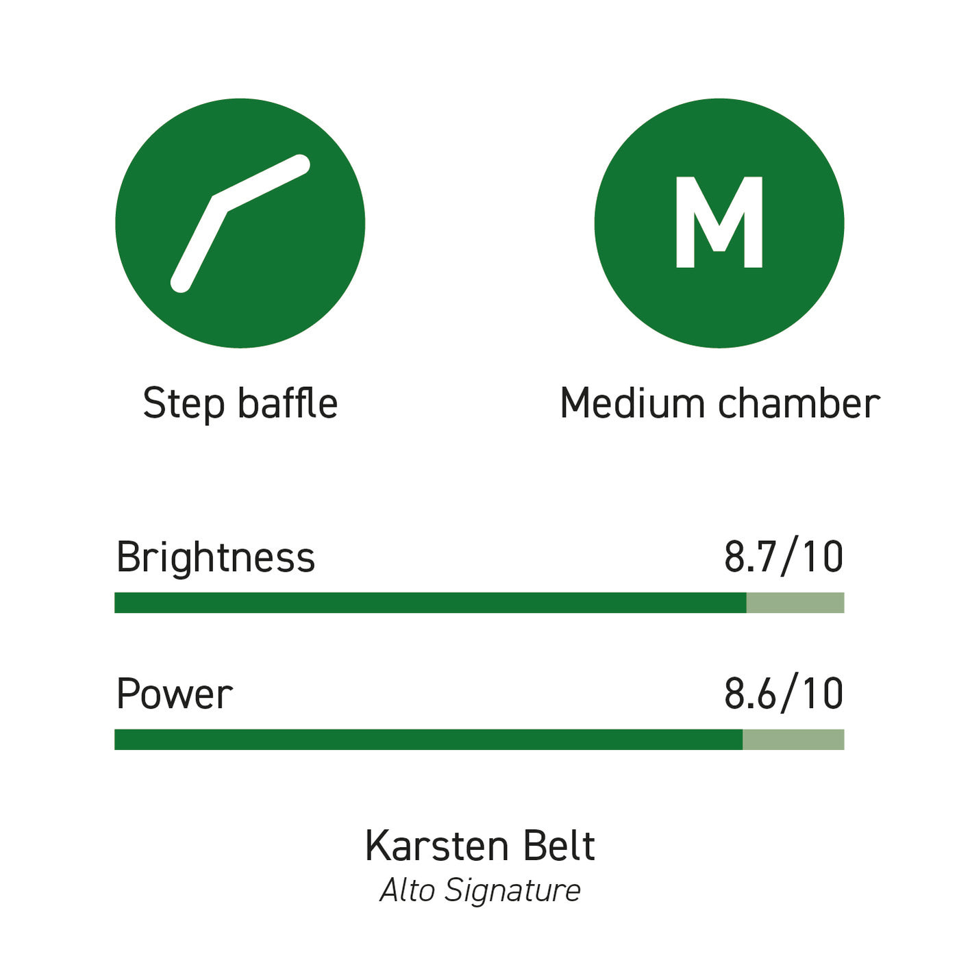 Avec sa chambre moyenne et son plafond long brisé, le bec Alto de Karsten Belt vous offrira un son très brillant et très puissant avec une grande facilité d'émission.