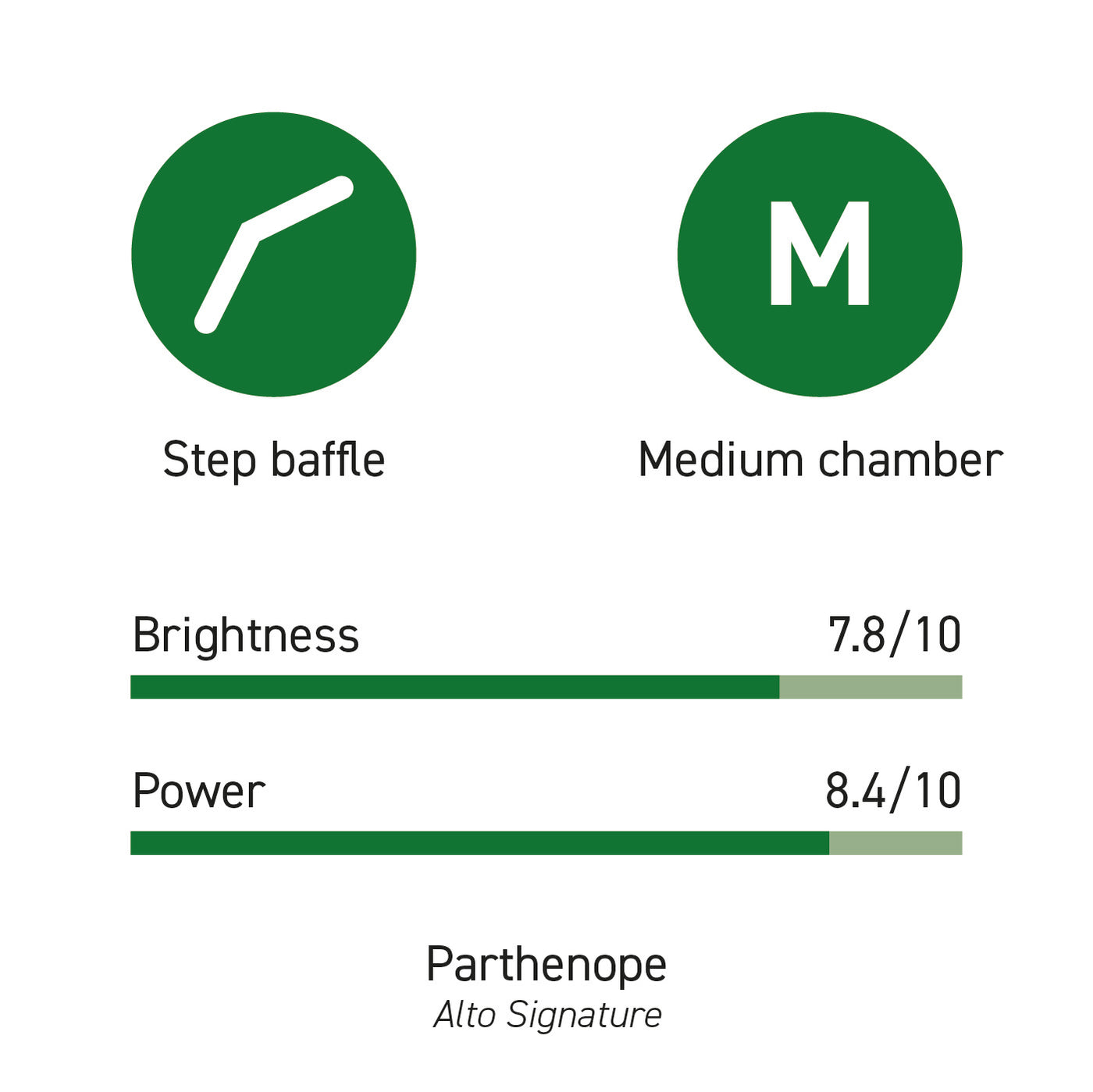 Avec sa chambre moyenne et son plafond brisé, le bec Alto de Parthenope vous offrira un son très brillant et puissant avec une grande facilité d'émission.