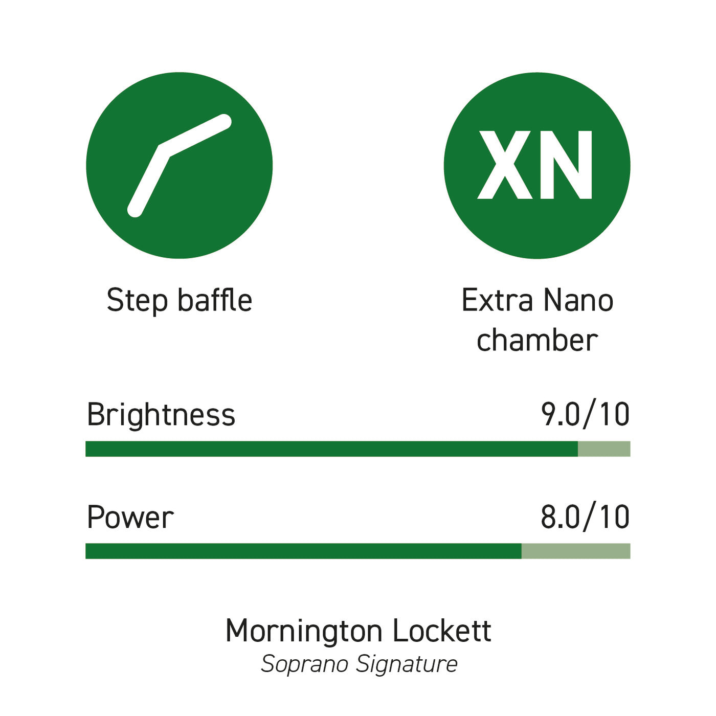 Le bec le plus brillant et puissant de la gamme Syos Signature pour soprano, avec un plafond brisé et une très petite chambre.