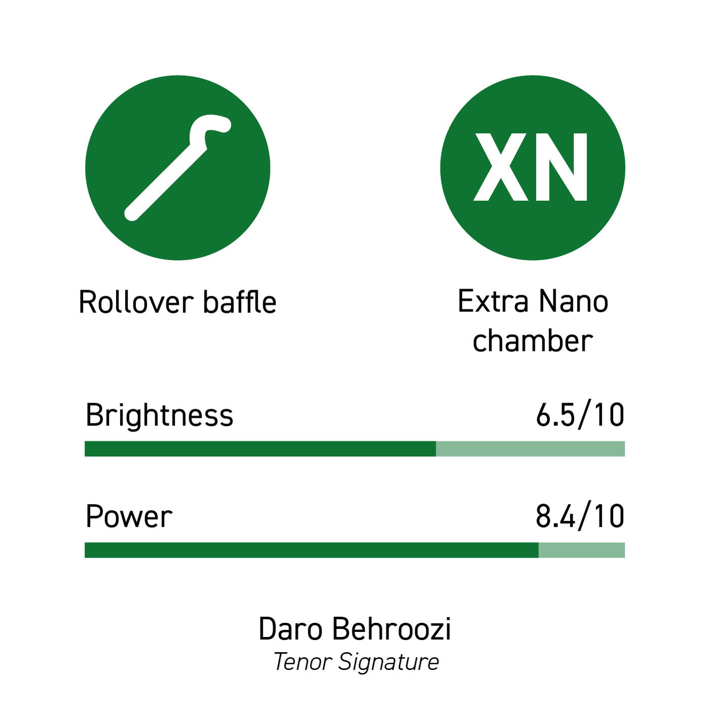 Un bec au son brillant et très centré grace à son plafond "roll-over" et sa chambre nano. Le bec idéal pour un son brillant si vous n'aimez pas les plafonds brisés.